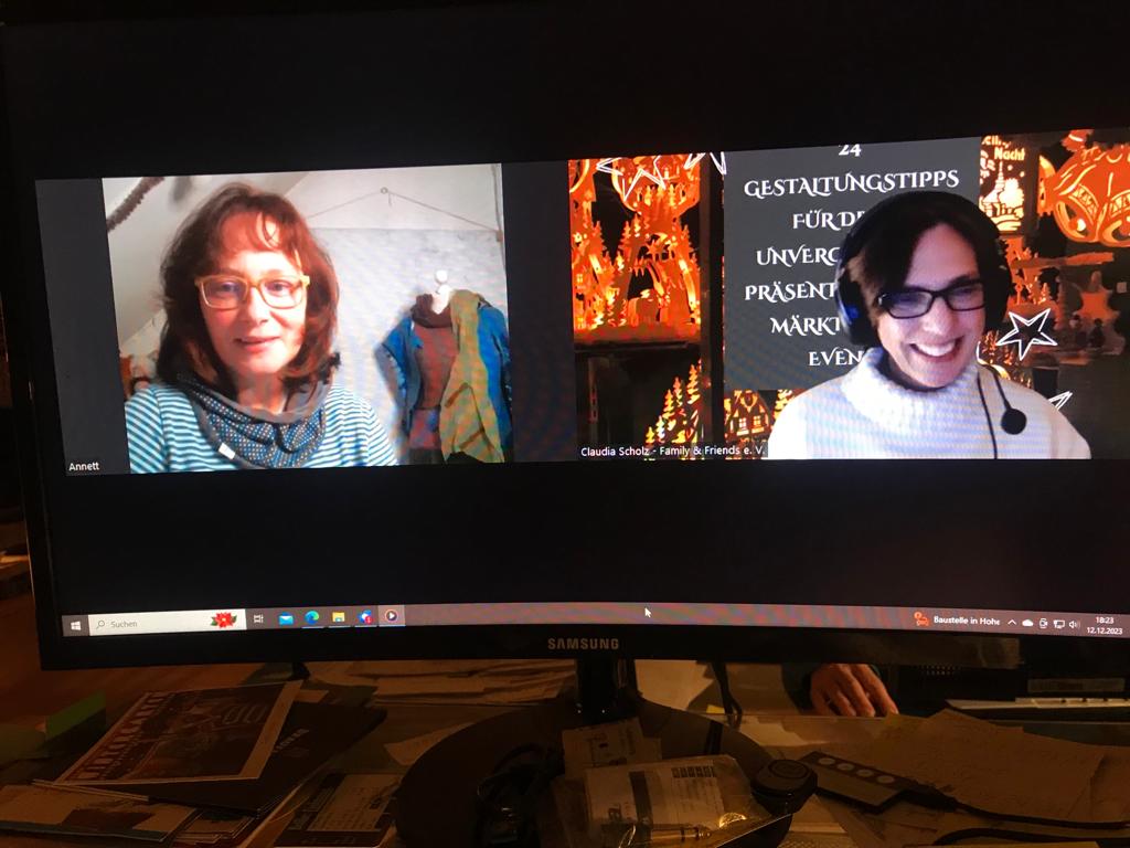 Was das mit diesem Format auf sich hat? Ich erzähle zum Beispiel von meinem 12. Dezember und das ist oft mehr als nur ein Tagesbericht. Aktuell gibt es eine Menge zwischen den Advents- und Weihnachtsmärkten, die wir für Berlin-Charlottenburg organisieren, zu erledigen. Dazwischen liegen die Tage, die dem Adventskalender für Künstler und Designer gehören. Ich bin gespannt, welche Gestaltungstipps für Märkte und Events wie bei den Abonnent*innen abschneiden. Ein bisschen Vor- und Nachbereitung muss auch sein. Deshalb ist heute das Interview zwischen Annett und mir entstanden.
