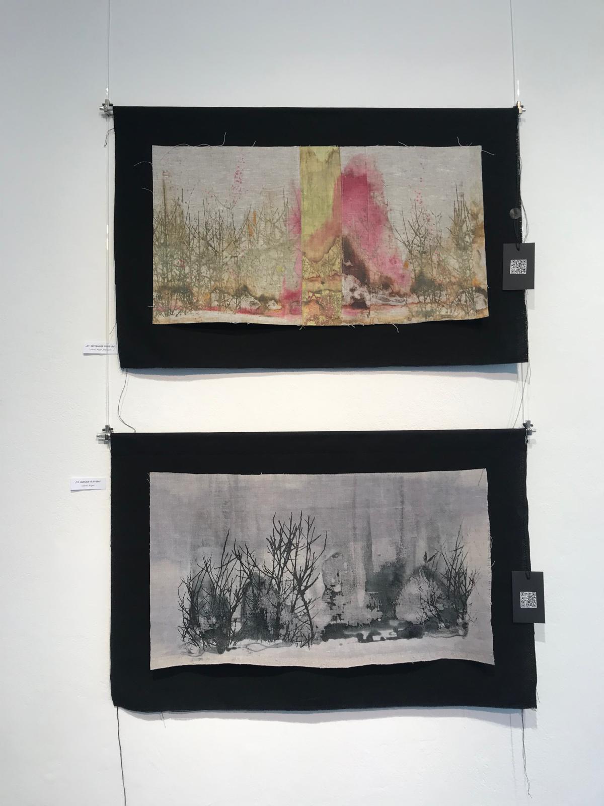 Olivia Kaufmann ist textile Künstlerin. Ihr Beitrag hört auf den Titel „unbemerkt“. Sie stellt Arbeiten aus den Serien „irgendwo dort“ und „Durchgänge“ aus.