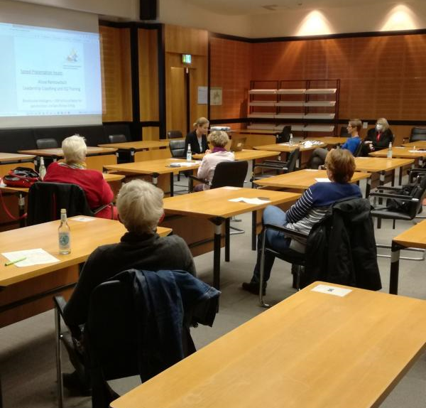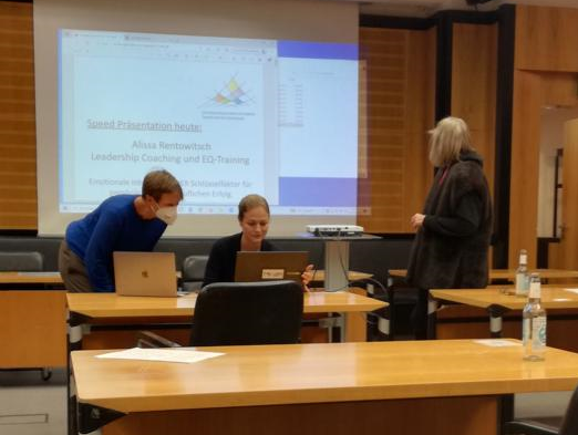 Nach Ende des ersten Vortrags gab es eine Netzwerkrunde, an der jede der Teilnehmerinnen sich und seine Arbeit innerhalb von fünf Minuten vorstellte. Am Ende tauschten die Visitenkarten ihre Besitzerinnen.