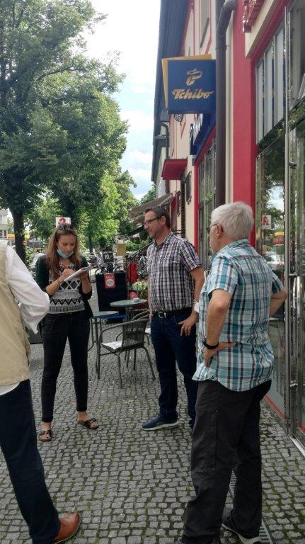 Das Treffen fand zwischen Julia Lehmann von der Berliner Morgenpost, Raimund Bayer, Rainer Welz, Stefan Piltz und Claudia Scholz in der Bahnhofstraße statt.